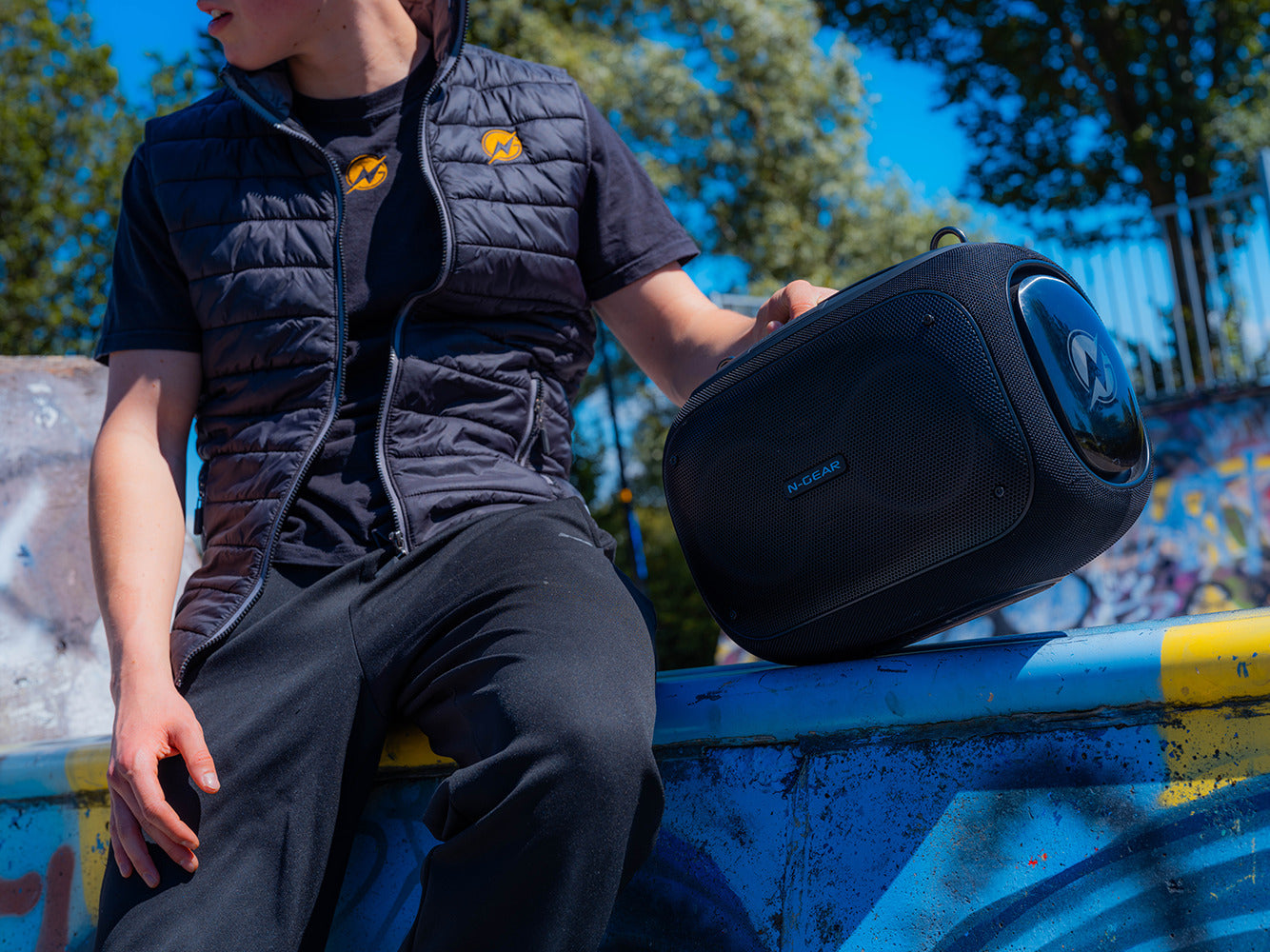N-GEAR NRG 600 Bluetooth Party Speaker Compact, powerful and ready for any party The N-GEAR NRG 600 Bluetooth Party Speaker is your ideal partner for any party. Whether you want to listen to music indoors or outdoors, this portable speaker delivers powerful sound and convenient features that always work to your advantage. Advantages of the NRG 600 120W output power for powerful stereo sound Bluetooth 5.3 for a stable wireless connection IPX5 water resistant, ideal for outdoors Up to 10 hours of playtime with built-in battery Function as a power bank for your smartphone Party lighting provides extra atmosphere Including 2 microphones for karaoke and more Ease of use and connectivity The NRG 600 is ready to use right away. Connect your smartphone via Bluetooth and start your playlist. Thanks to the included shoulder strap, you can easily take it with you wherever you go. Connect a second speaker for extra volume. Technical specifications Power: 120 Watt Frequency range: 40 Hz – 20,000 Hz Bluetooth version: 5.3 Waterproof: IPX5 Playtime: up to 10 hours Charging function via USB What's in the box? 1 x N-GEAR NRG 600 speaker 2 x Microphones 1 x Shoulder strap 1 x USB-C cable 1 x AUX cable 1 x Manual Bring every party to life with the N-GEAR NRG 600 Bluetooth Party Speaker. Order today and enjoy powerful music wherever you are!