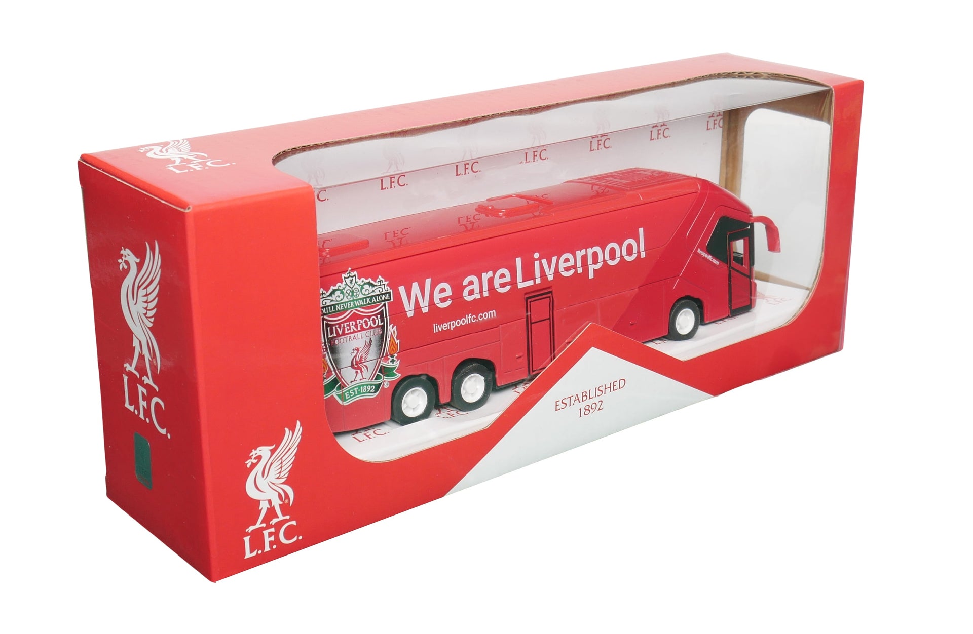 Replica of the Liverpool FC team bus, showcasing the legendary red colors of the club. A fantastic gift for Reds supporters.