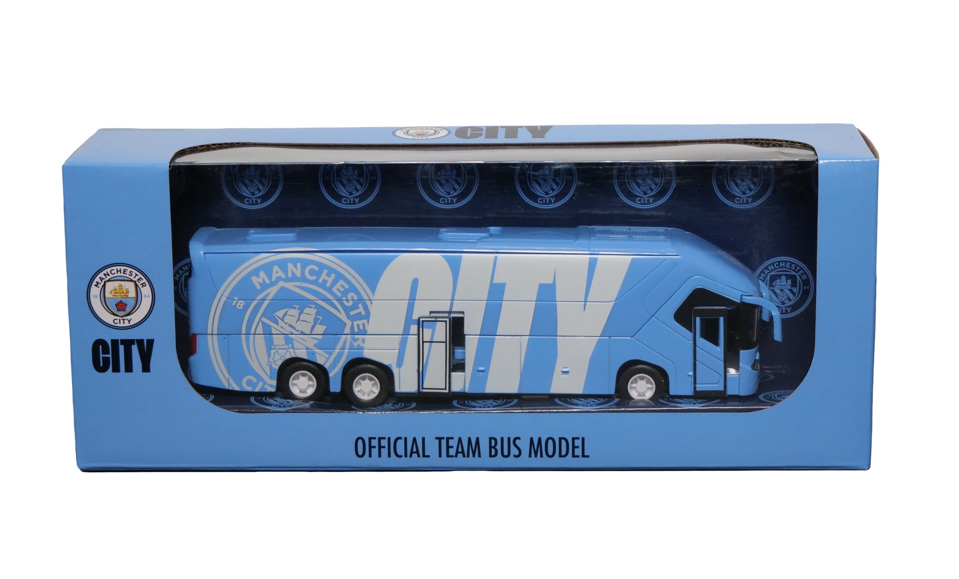 Miniature model of the Manchester City official bus, in the club’s sky blue design. A collector’s item for Cityzens fans.