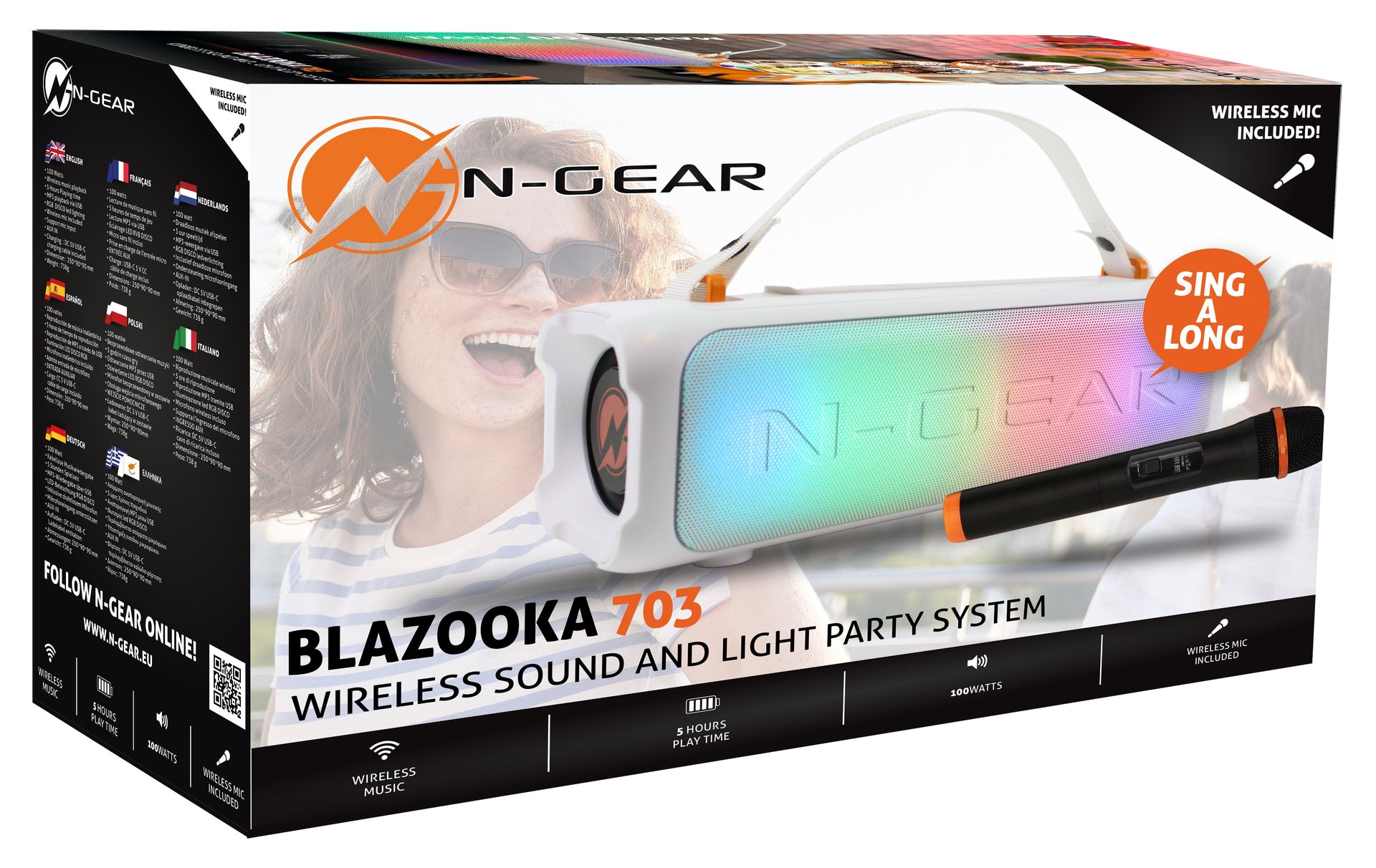 N-Gear | Blazooka 703W Bluetooth Speaker Karaoke Set Party Box with Microphone White