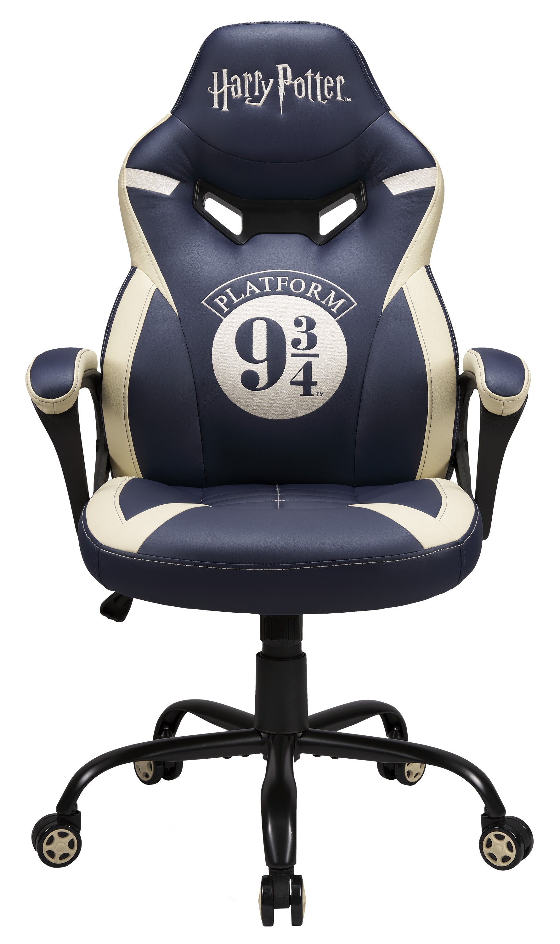 The Harry Potter Platform 9¾ gaming chair is expertly crafted to support extended gaming and work sessions with maximum ergonomic efficiency. Its contoured backrest aligns seamlessly with the natural curve of the spine, reducing fatigue and encouraging proper posture. Constructed from high-density foam and upholstered in durable, easy-care leatherette, this chair combines long-lasting comfort with refined aesthetics. Featuring detailed embroidery of the Platform 9¾ emblem and contrasting topstitching, it offers a subtle yet unmistakable connection to the wizarding world. Engineered for stability and adaptability, the chair includes a sturdy star-shaped metal base and a Class 3 gas-lift mechanism to ensure precise height adjustment.
