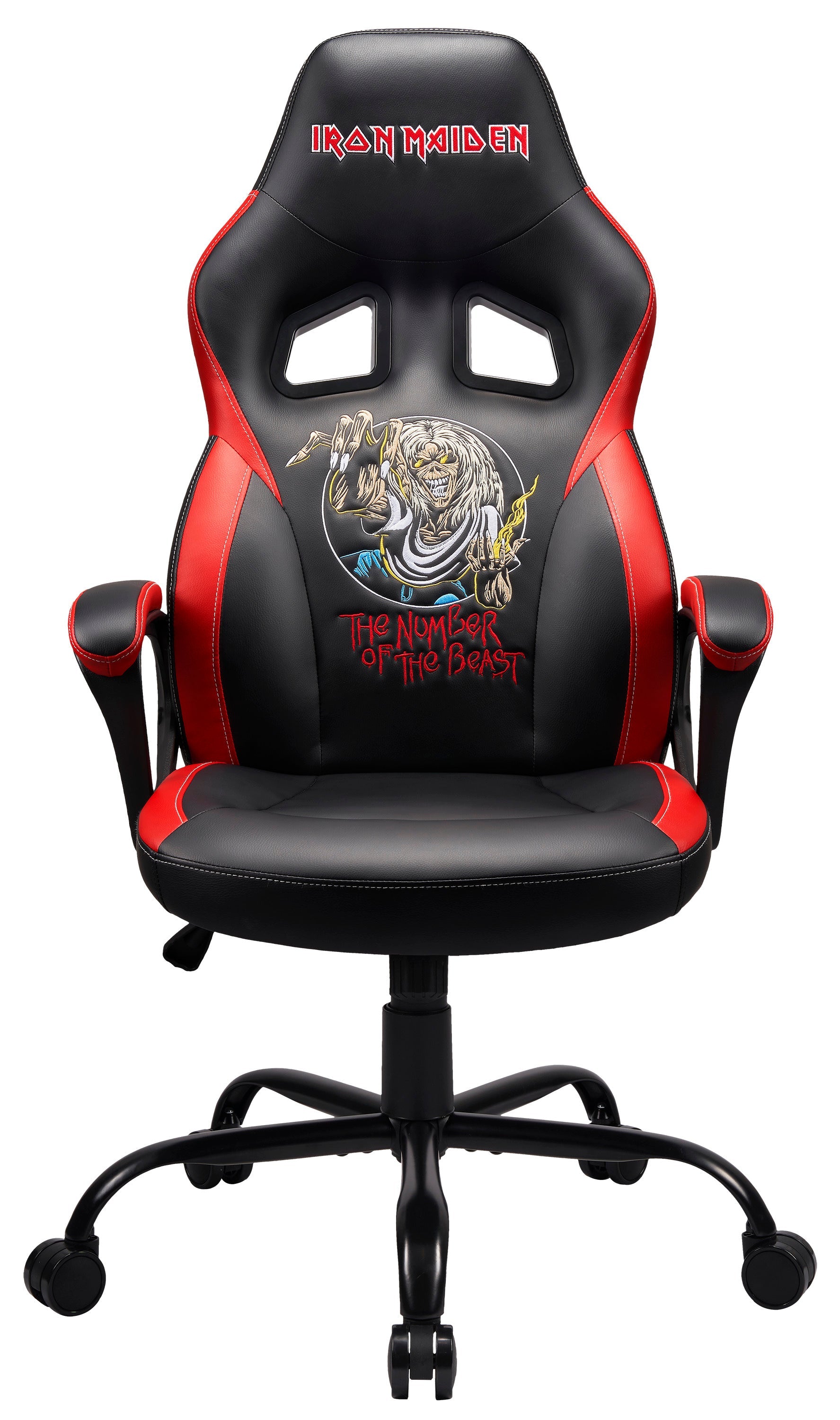 Step into the uncompromising world of heavy metal with the Iron Maiden The Number of the Beast Gaming Chair. This officially licensed seat delivers a powerful fusion of form and function, inspired by the band’s legendary album and signature aesthetic. Designed for long-lasting performance, this chair offers ergonomic support, durable construction, and high-end finishes that reflect the intensity and artistry of Iron Maiden’s music. With Eddie the Head watching your back, every session becomes a metal-infused experience grounded in comfort and stability.
